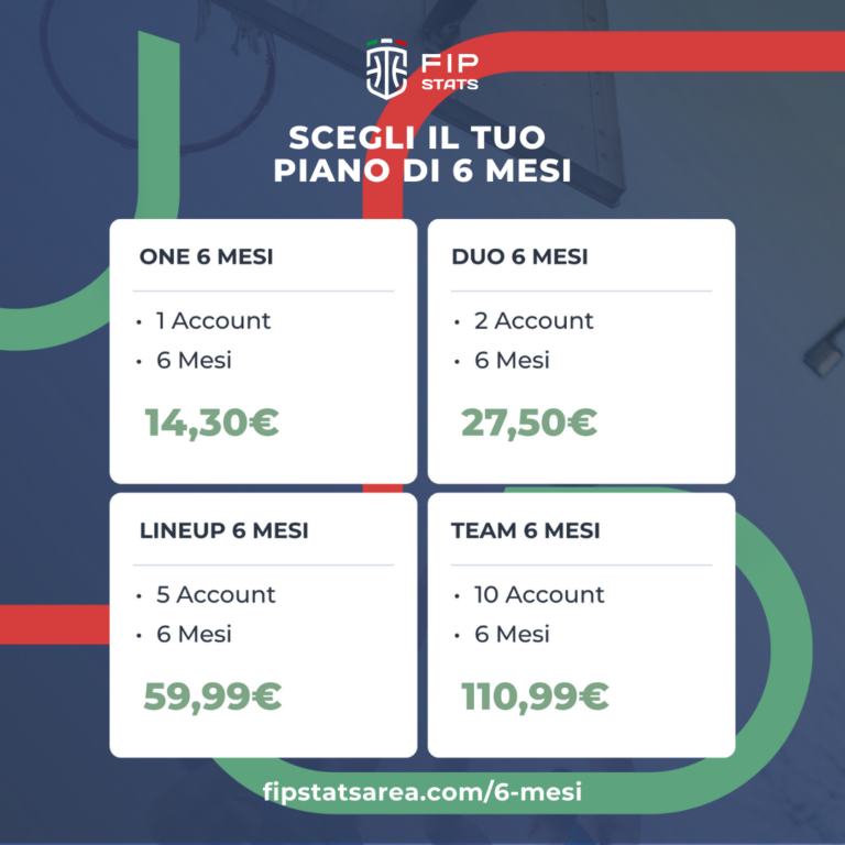 FIP Stats Black Week: 3 giorni gratis + 20% di sconto su GOLD La Black Week è iniziata. Per sette giorni puoi usare FIP Stats con un accesso speciale e un’offerta valida da lunedì a domenica. Da lunedì 24 a mercoledì 26 novembre tutte le funzioni GOLD saranno disponibili per tutti senza abbonamento. 3 giorni di accesso gratuito Da lunedì a mercoledì puoi usare tutte le funzioni GOLD senza limiti: Report di gara con riepiloghi delle prestazioni Box Score e dati Play by Play Migliori Continua a leggere - 🏀 Conosci il Tuo Prossimo Avversario con FIP Stats